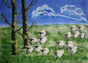 2008Kudde in het veen, sjabloon techniek, acryl op papier met paletmes.
