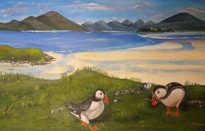 2017Prachtige papagaaiduikers komen aan land om te nestelen.